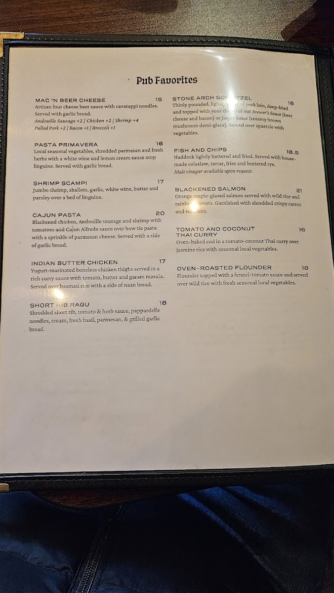 Don't miss the Biergarten Salad for a refreshing taste of organic greens with seasonal fruit, perfectly dressed in Hazy IPA vinaigrette. Each dish reflects the essence of the Stone Arch brand—crafted with heart and meant to be savored.